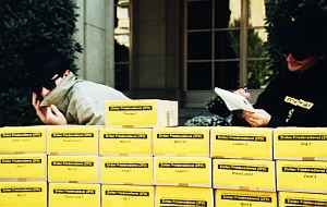 Scharf beoabachtet vom realen und virtuellen Geheimdiensten werden die Unterschriften vor der Bundeskanzlei für die Einreichnung bereit gestellt.
