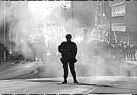 Die Nato verfing sich so in ihrer eigenen militärischen Dynamik. Die Vertrauenswürdigkeit der Nato stehe auf dem Spiel, hiess es bald einmal aus dem Hauptquartier dieser militarisierten Politik. Ob es wirklich zu den Bombardierungen kommen wird oder nicht, hängt nun gar nicht mehr so sehr von der Situation im Kosov@ ab als von der «Innenpolitik» der Nato, die ihr Gesicht wahren und dem Eindruck vorbeugen muss, nur leere Drohungen auszusprechen. Weltweit war bei aller Ratlosigkeit eines klar: Mit Bomben aus der Luft ist Frieden im Land nicht zu haben. Auch in der Schweiz waren die Stimmen unisono, von Friedensbewegten bis zu Militärvertretern und quer durch alle Medien: «Die Drohgebärde ist weder militärisch noch politisch in eine erfolgversprechende Strategie eingebettet.» So kommentiert Peter Fürst im Tages-Anzeiger die militaristische Sinnlosigkeit (3. Oktober 1998). «Hinter der demonstrativen militärischen Stärke verbirgt sich nicht unbedingt politische Stärke. (...) Die USA haben keine langfristigen Vorstellungen über die Zukunft des Balkans, das erschwert auch die Erreichung kurzfristiger Ziele», doppelte er am 13. Oktober nach. Aber auch die kaum als militärkritisch bekannte Neue Zürcher Zeitung fragte sich in einem Leitartikel (10. Oktober): «Was nützen Nato-Luftangriffe?», um festzuhalten: «Was mit Luftschlägen jetzt noch bewirkt werden könnte, ist unklar. (...) Auch in Kosovo mangelt es, wie schon während sehr langer Zeit in Bosnien, an einem von Washington und den wichtigsten europäischen Verbündeten unter Einschluss Russlands getragenen politischen Konzept, wie die Balkanregion kurzfristig befriedet und lanfristig stabilisiert werden könnte. (...) Sieht das Bündnis nun von Angriffen ab, ohne dass dem starken Mann in Belgrad substantielle Zugeständnisse abgerungen werden konnten, so hat es seine Glaubwürdigkeit gänzlich verspielt.» Obwohl über den Unsinn dieses Nato-Militarismus Konsens bestand, begann in der Schweiz sofort die Diskussion, ob man nicht mittels dringlichem Bundesbeschluss auch Schweizer Soldaten erlauben müsste, dabeizusein... Die Nato im DilemmaEine Nato-Intervention würde allerseits als einseitige Einmischung in die inneren Angelegenheiten eines souveränen Staates betrachtet. «Militärisch zu intervenieren heisst unter den gegebenen Bedingungen, jene Kräfte im Kosovo zu unterstützen und zu legitimieren, die seit mehreren Jahren und verstärkt seit der Vereinbarung von Dayton mit Gewaltmitteln gegen Einrichtungen der Belgrader Zentralregierung in der Provinz und gegen dort lebende Serben vorgehen», schreibt August Pradetto, Professor am Institut für internationale Politik an der Bundeswehr-Universität Hamburg (Blättern für deutsche und internationale Politik, Nr. 9/1998). Ohne Mandat des UN-Sicherheitsrates gibt es keine völkerrechtliche Grundlage für eine Intervention. Im