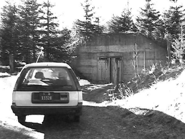 Getarnter Haupteingang mit der Überschrift "Wasserreservoir"