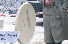 Vor dem Eingang des Kongresszentrums in Davos stellten wir einen Aussenposten des Funkaufklärungssystems ONYX mit einem Faxgerät, Kabelsalat und einer schönen Satellitenschüssel auf. Danach verteilten wir den Passanten unsere vorgefertigten Faxe und versuchten, die Leute in Gespräche zu verwickeln. Unter anderem drückten wir diversen Forumsteilnehmern unsere Zettel in die Hand, zB einer Kuwaitischen Delegation und dem irakischen Aussenminister. Wir hoffen, dass wir mit unserer Aktion nicht allzu grosse diplomatische Verstimmungen auslösen werden, da scheinbar relativ viele der Leute den satirischen Charakter unserer Faxe nicht direkt erkannten.
